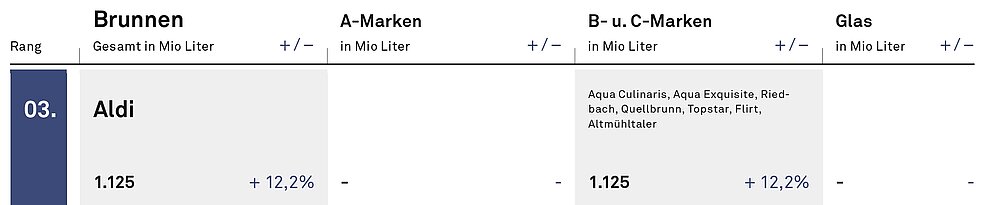 Mit dem Rückzug von Michael Schäff war Aldi eher zwangsläufig in die Eigenproduktion von Mineralwasser eingestiegen (INSIDE 913). Aldi Nord übernahm die beiden Schäff-Werke Altmühltaler in Treuchtlingen sowie Breuna in Nordhessen. Aldi Süd bezieht nur Ware, ist gesellschaftsrechtlich außen vor. Der Vorsprung einer MEG von Wettbewerber Schwarz ist freilich nicht mehr einzuholen.