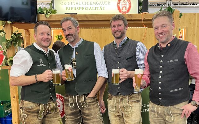Auch die „Hofei“-Hütte vom Hofbräuhaus Traunstein zog wieder zahlreiche Gäste an. Der österreichische Großverleger Morandell (u.a. Partner von Schneider Weisse, Erdinger, Trumer, Charles Heidsieck) fungierte wieder als Auffangbecken auf der Ostseite der Messe in Halle 4.