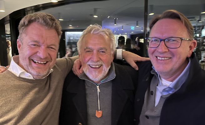 Alte Inbev-Bande: Ex-Paulaner-Mann Jan Huff (heute Weinwerkstatt Huff), Schweiger Bräus Vertriebswaffe Charly Minks und sein Gf Marc Hammacher (v.li.n.re.).