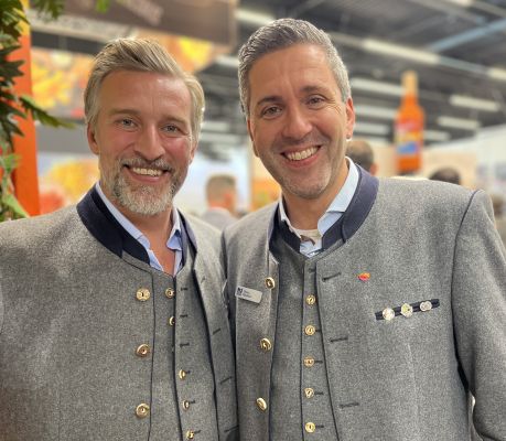 Erdinger CEO Stefan Kreisz und Rauch Deutschland-Chef Thomas Blankenberg sind mit der Messe zufrieden.