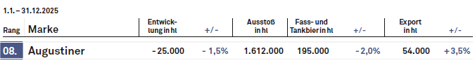 Zu beinahe alter Stärke findet indes das klassische Augustiner Hell zurück. Zwar blieben auch die Münchner nicht von der allgemeinen Marktschwäche verschont, doch das Minus fällt vergleichsweise moderat aus. Selbst die Preiserhöhung im Februar hinterließ laut GFGH-INSIDERN keine spürbare Delle. Im Gegenteil: Augustiner soll Attraktivität gegenüber anderen „blauen Kisten“ zurückerobert haben, teils allerdings durch Aktionen, die im LEH immer häufiger zu sehen sind.