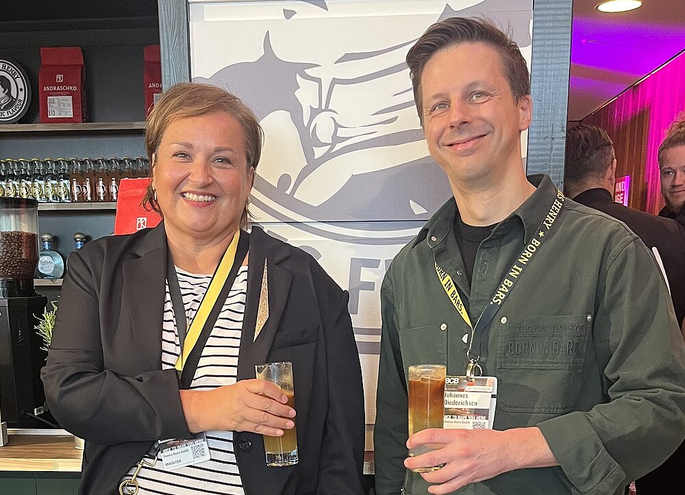 Rising Brands-Chef Stefan Fröhlich und GES-GFGH-Chef Marcel Freches lassen sich am Montagnachmittag von neuen Bar-Trends inspirieren.