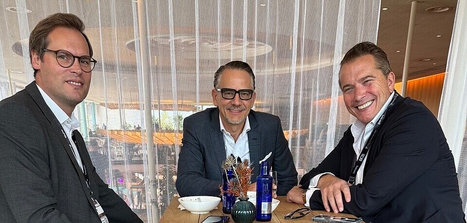 Henry-Macher Jens Vielhauer (re.) mit seinen beiden neuen europäischen KAMs: Karim Fadl (li.) für die Hotellerie und Hannes Höpfner (Airlines, Mein Schiff, Systemgastro)