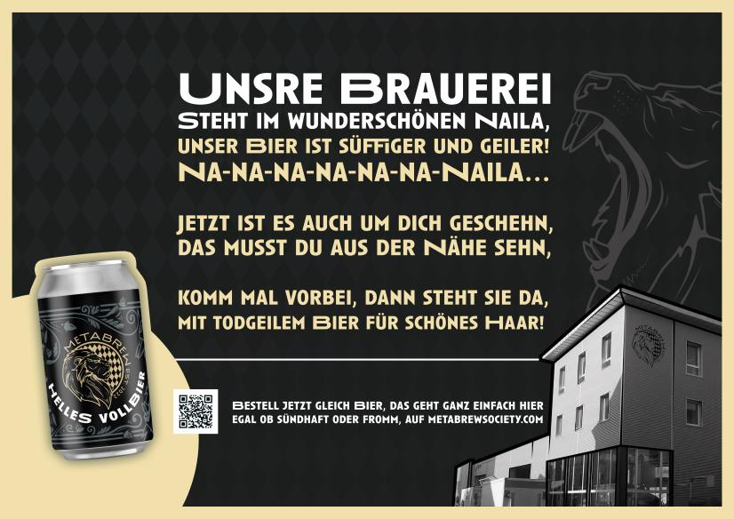 In aller Bescheidenheit feierte das Marketing von MetaBrew den Aufschlag an bislang eher unbekanntem Ort á la Layla-Song mit dem Slogan "Unser Bier ist süffiger und geiler/Na-Na-Na-Na-Na-Na-Naila".