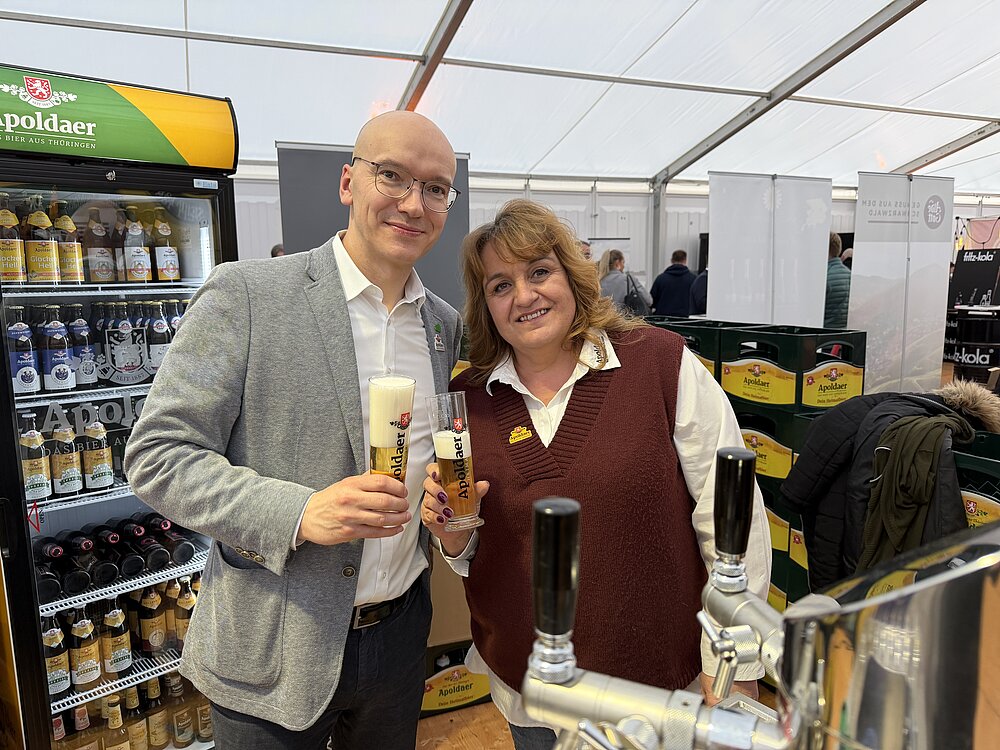 Verzichten auf Limos: Carsten Schütz, Gf der 60.000-hl-Brauerei Apoldaer mit seiner Marketingchefin Kristina Crongeyer