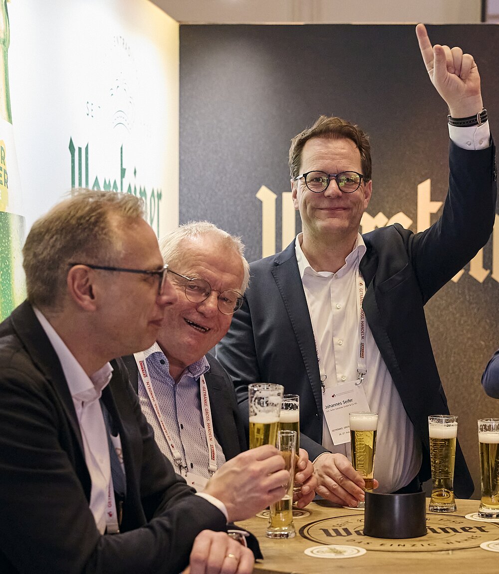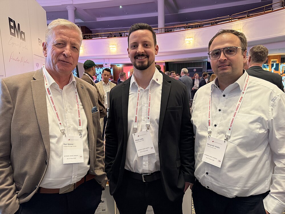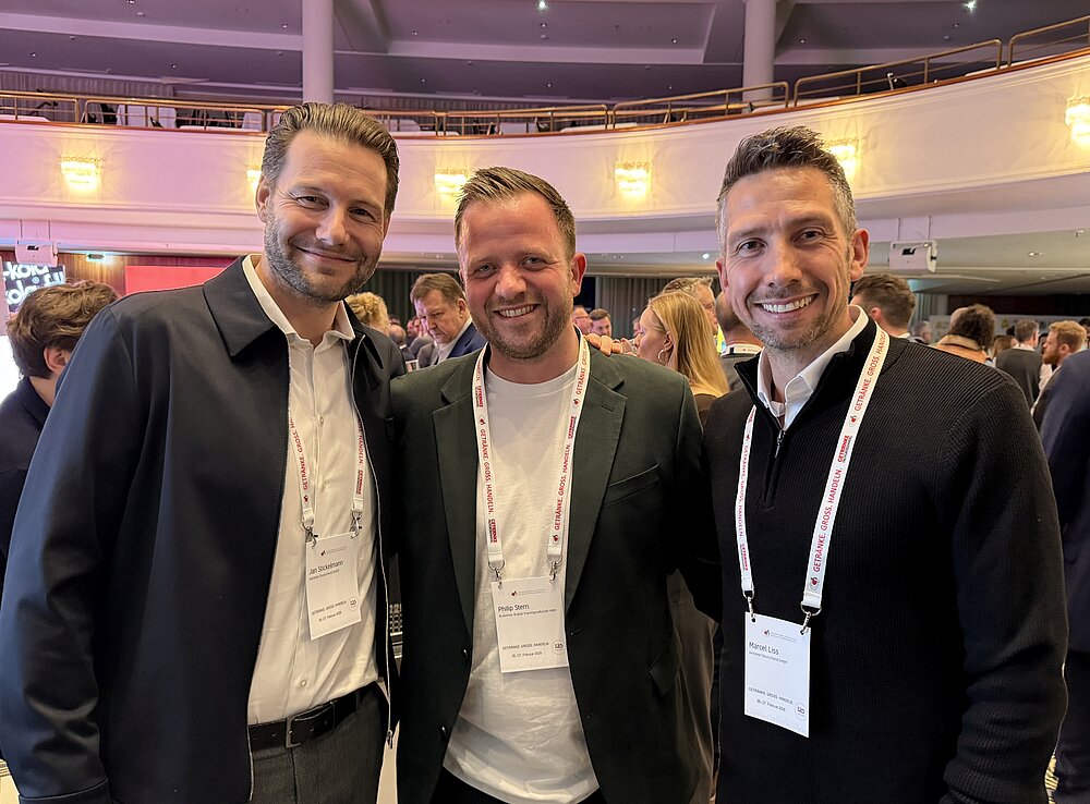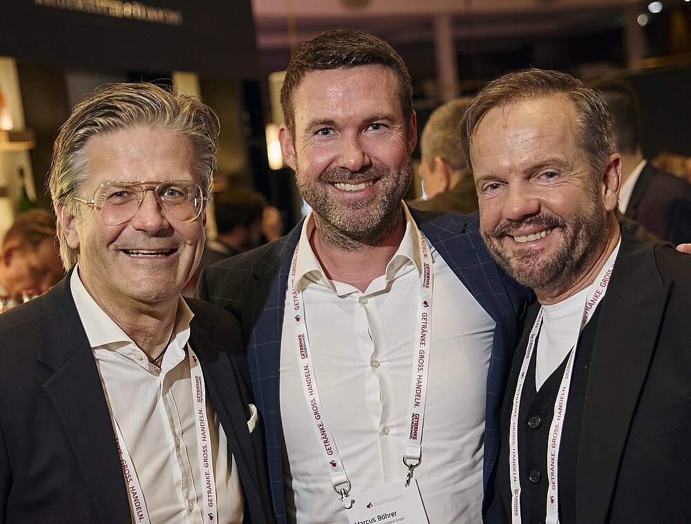 Heinekens designierter Deutschlandchef Jan Stickelmann und Feldmannschaftshäuptling Marcel Liss nehmen Ex-Kollege Philip Stern (Budvar) in die Mitte