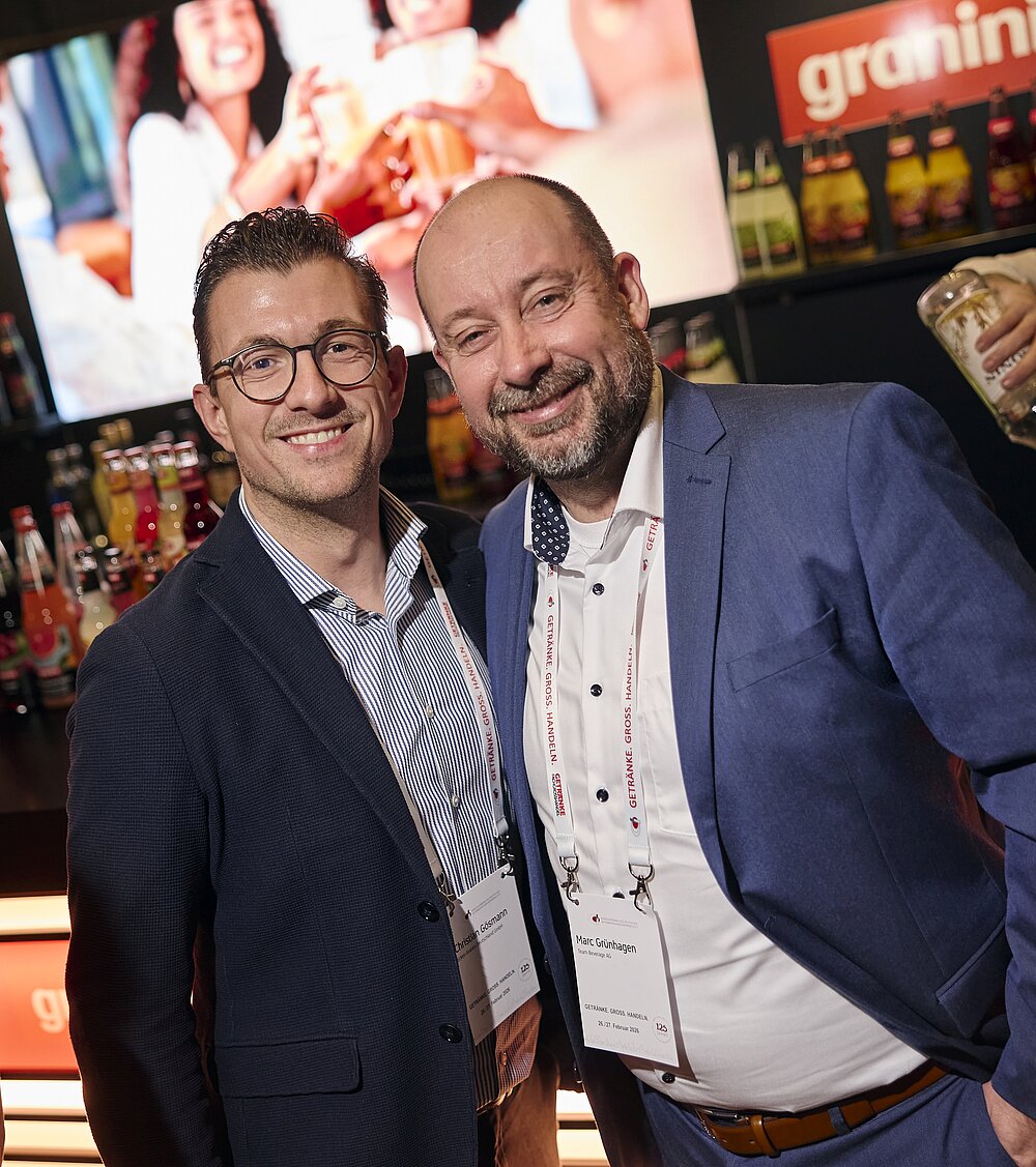 Mehrweg-Visionen? Winkels-Logistiker Thomas Herzog und Vertriebs-Gf Heiko Ursprung (re.) haken bei Marcus Böhrer (Eckes-Granini) nach