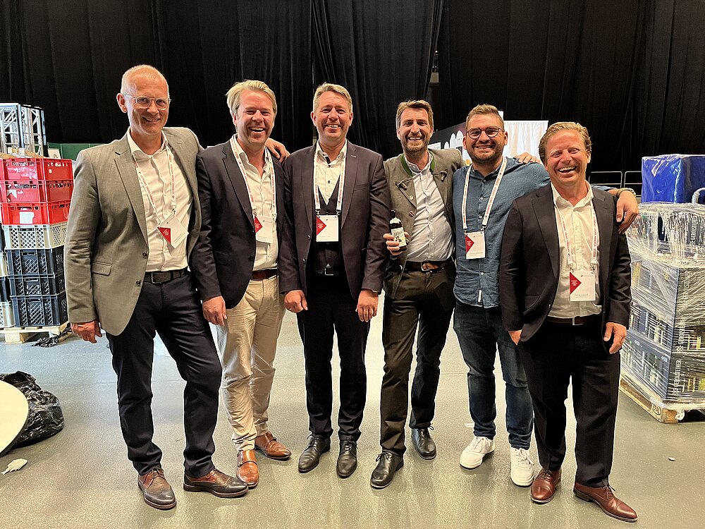 Ein bisschen Western zu später Stunde: Die Daltons der Getränkebranche Torsten Gieschen (Maisel‘s) mit den Tadsen-Brüdern Henning und Andreas, Christian Schuhbeck (Maxlrainer), Christoph Zimmermann (FZ Getränke) und Bohnhof-Getränke-Inhaber Thomas Bohnhoff aus Hamburg.