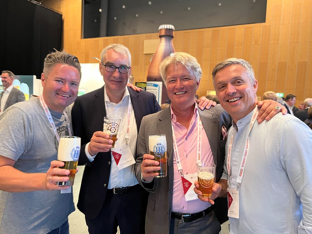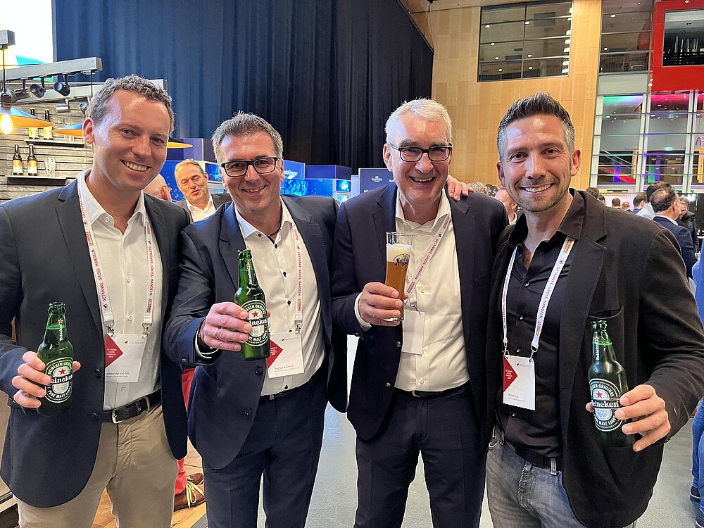 Generationentreffen: Heinekens Vertriebschef Alexander van Gils nimmt mit seinem Gastro-Kollegen Marcel Liss den GDN-Boss Stephan Wachholz und Maisel‘s Hermann-Josef Boerger in die Zange