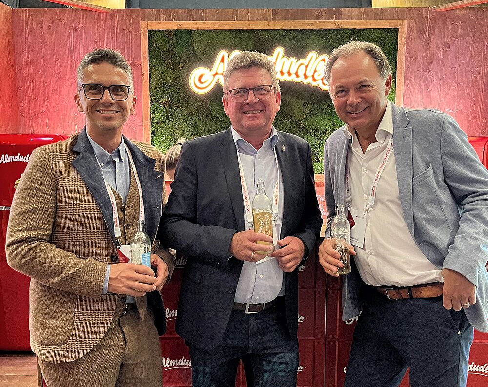 Dudeln jetzt gemeinsam: Gesamtverkaufsleiter Thomas Horak mit seinem Leiter KAM Deutschland Mike Butz und Almdudler-Chef Gerhard Schilling