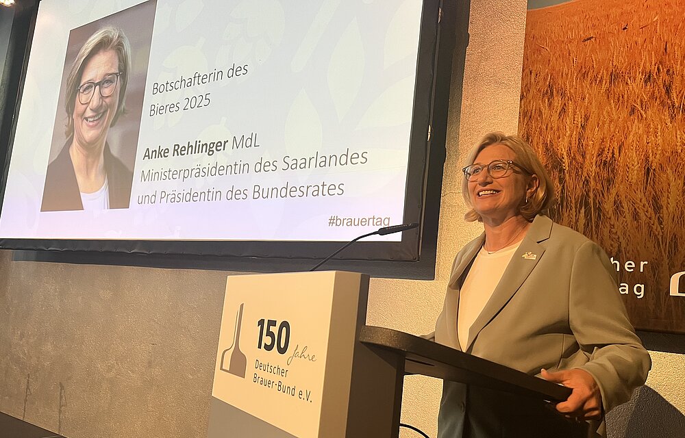 Die neue Bierbotschafterin des Deutschen Brauer-Bundes (DBB) heißt Anke Rehlinger (SPD). Die Ministerpräsidentin des Saarlandes und derzeitige Bundesratspräsidentin folgt CDU-Generalsekretär Carsten Linnemann, der im Rahmen des heute abend in Berlin stattfindenden Brauertags auch die Laudatio auf Rehlinger hielt.