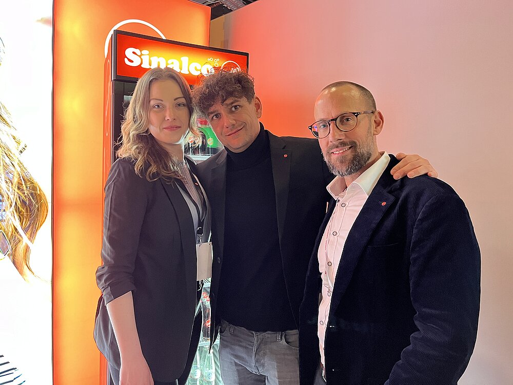Bringen das Bio-Mineralwasser Rheinfels Urquell ab Ostern auch in die 0,33er Longneck: Lena Ermler (Innendienst KAM), Ramy El-Hassan (Nationaler KAM) und Olaf Hartmann (VKL)