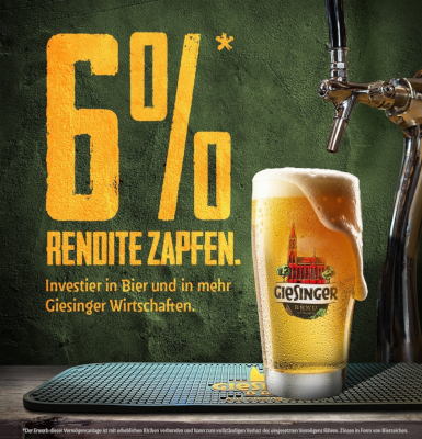 Die Giesinger Brauerei zapft erneut und damit zum sechsten Mal die Crowd an, um an frisches Kapital zu kommen. Auf der Crowdfunding-Plattform Conda sammelt Giesinger-Gründer Steffen Marx mit Gf-KollegeJonas Seidl Geld ein, um unter dem Motto "Mehr Grün für München" in erster Linie eine CO2-Rückgewinnungsanlage für seine Brauerei (Werk 2) finanzieren zu können. Damit will Marx seine Brauerei "unabhängig von den teilweise verrückten Preisen und Verfügbarkeiten für Kohlendioxid" machen.