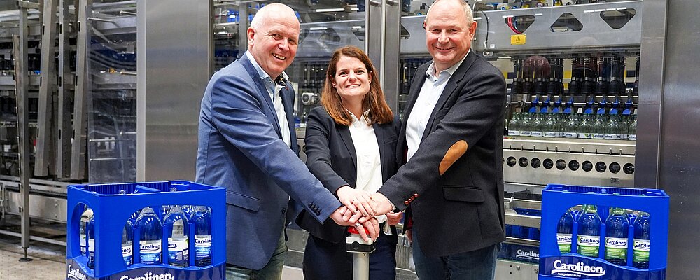 Die Hassia-Tochter Carolinen Brunnen hat heute ihre neue Flaschen und neue Kisten vorgestellt. Die Bio-zertifizierte Hauptmarke Carolinen wird ab sofort in eine Individualglasflasche mit Relief gefüllt. Damit weicht die Gruppe von GdB-Vorstand Dirk Hinkel erstmals vom Kurs ab. An allen anderen Brunnenstandorten setzt die Hassia Gruppe eisern auf GdB-Flaschen.