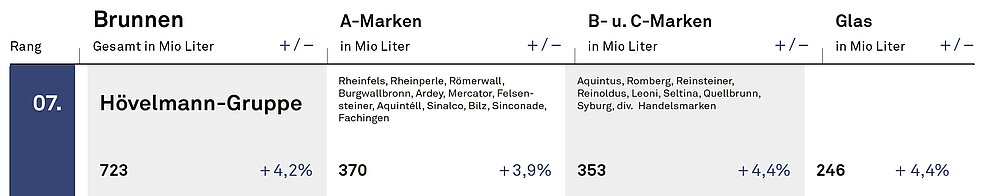 Einem branchenmiesen Juni folgte bei den Duisburgern ein Jahr, das am Ende ein schönes Absatz-Plus in die Bilanzen spülte. Vor allem für Fachingen und Rheinfels, weniger für Sinalco. Während sich die legendäre Limo gegen immer mehr Seepferdchen aus Brauerkreisen erwehren muss (Cola-Mix, Brauerei-Limonaden) und am Ende bei gut 80 Mio Litern landete (rund 3% unter Vorjahr), kraulten die beiden Wassermarken auf ihrer eigenen Bahn davon: Rheinfels tauchte beim 2023er Stand von 105 Mio Litern noch mal ein und landete am Zielblock Ende 2024 bei 118 Mio Litern oder über 150 Mio Füllungen, ein Plus von 12%.