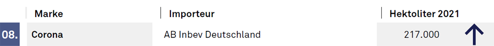 Strandgefühl am Omikron Beach. Für die deutsche AB Inbev-Organisation lag der Fokus 2021 auf Beck‘s Unfiltered, Spaten und auf Corona extra. Das mittlerweile in Belgien bei Jupiler hergestellte „mexikanische“ Maisbier hat den Sog zu internationalen Top-Marken schon vor Beginn der der Pandemie erfahren. Als das gleichnamige Virus ausbrach, ging Corona endgültig durch die Decke. 2020 lag die Wachstumsrate bei über 50%. 2021 kamen weitere 22% auf insgesamt 217.000 hl hinzu. Auch 2022 scheint sich die Geschichte fortzusetzen.