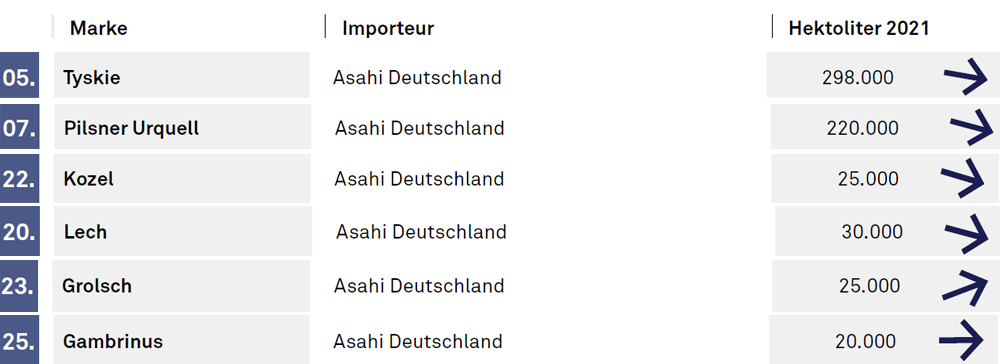 Dass das Gesamtminus für das vergangene Jahr bei nur 3% liegt, dürfte vor dem Hintergrund einer alle Marken betreffenden Auslistung bei Kaufland sowie dem Einfluss der Pandemie in der Kölner Deutschland-Zentrale als Erfolg gewertet werden. Zumal das Jahr 2022 wesentlich besser angelaufen ist. Vor allem Pilsner Urquell findet zu alter Stärke zurück, liegt aufgelaufen bis Mai bei 100.000 hl (+25%). Aber auch Tyskie hat in diesem Zeitraum um 10% auf 120.000 hl zugelegt. Lediglich Kozel schwächelt weiterhin. Bis Mai stehen 10.000 hl in den Büchern, was einem Minus von 5% im Vergleich zum Vorjahreszeitraum 2021 entspricht.