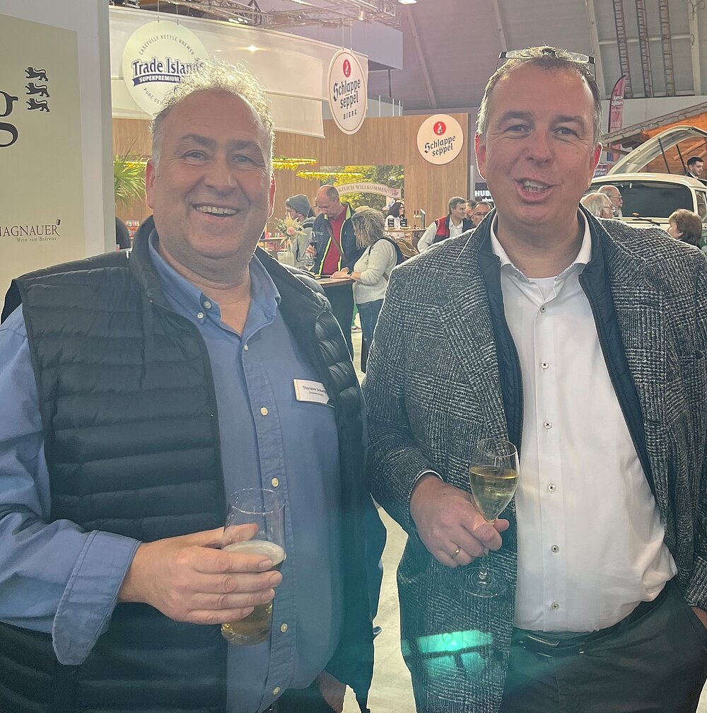 Inbev-Veteranen auf neuen Pfaden: Jan Huff (Ex-Paulaner) öffnet in Kürze einen Weinladen in Freising, Axel Göhr (zuvor Meckatzer) verkauft Saft bei Lindauer.