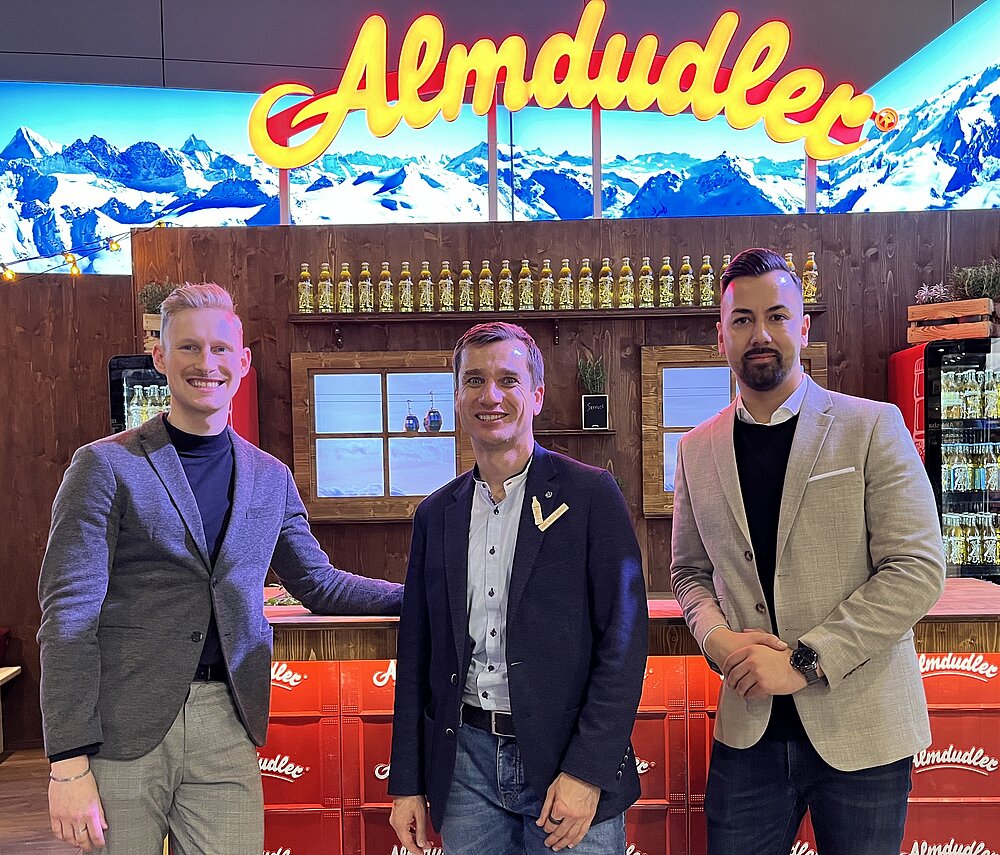 Haben in Deutschland seit Jahresbeginn mit ihrer eigenen Mannschaft Abfüller Franken Brunnen im Vertrieb abgelöst: Almdudlers Teamleiter Verkauf AD Christopher Witzig mit Senior KAM Mike Mühlberger und KAM David Schilling.