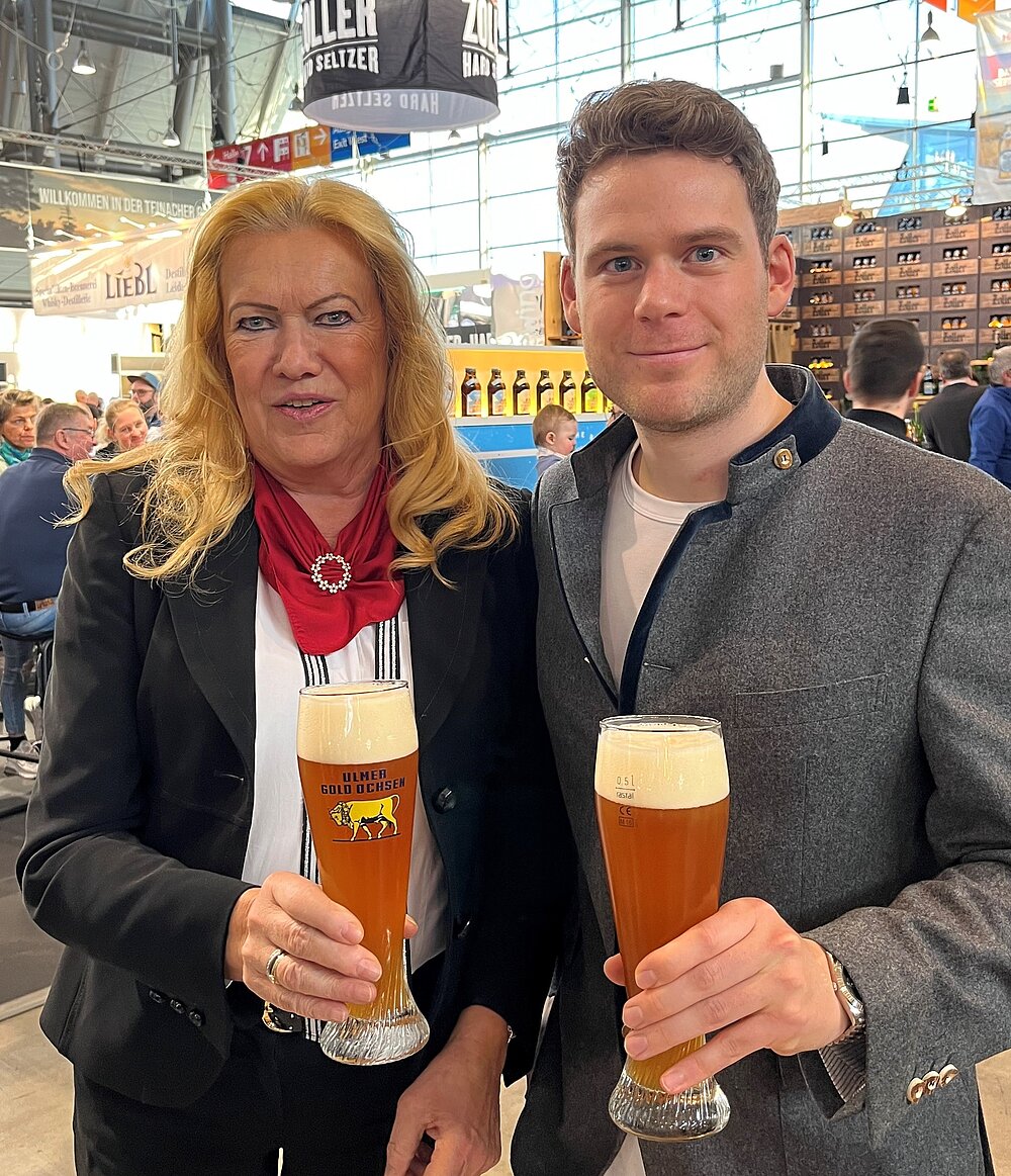 Im richtigen Glas: Goldochsen-Inhaberin Ulrike Freund und Maximilian Sahm, der nach dem Tod seines Vaters die Führung bei Rastal übernimmt