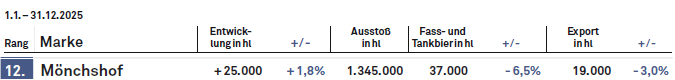 Im Westen hingegen läuft es gut. Würzburger Hofbräu und Kulmbacher liegen über Plan. Und das Flaggschiff Mönchshof wächst. Operativ läuft die Truppe des seit 24 Jahren amtierenden Vertriebsdirektors Michael Dorner auf Autopilot. Die neuen Artikel schlugen (mal wieder) ein. Neben Mönchshof hell (auch alkoholfrei) ging Naturradler Blutorange 0,0% durch die Decke. Lehmann schob brav Dienst bis zum letzten Tag, bevor er sich zum Jahreswechsel zum Staatlichen Hofbräu nach München aufmachte, wo er den langjährigen Brauereidirektor Dr. Michael Möller beerbt.