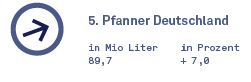 Sauber sog i. Der österreichische Eisteeproduzent hat es in Deutschland nicht nur zur Marktführerschaft im Kernfeld geschafft. Mit dem Eistee-Zug gewinnt auch Pfanners Saftgeschäft immer mehr an Fahrt. 2022 konnte Pfanner laut Marktforschung im klassischen Lebensmittelhandel, Cash & Carry sowie Top GAMs (Scan) um gut 3% beim Absatz und um gut 5% beim Umsatz zulegen. Viel Menge läuft im Discount. Daneben werden auch Eigenmarken produziert und für andere (u.a. Almdudler) abgefüllt.