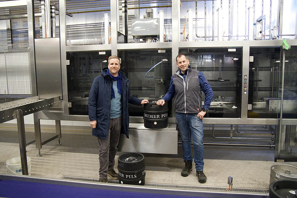 Bei gleicher Kapazität (180 KEG/h) benötigt die moderne Fassabfüllung nur noch zwei statt drei Linien. Und noch eine entscheidende Änderung gibt es: Bislang wurden die Flaschen- und Fassabfülllinien von einem Roboter mit Voll- und Leergut bestückt. Künftig machen das zwei Roboter, sodass Flaschen- und Fassabfüllung parallel laufen können. Die Inbetriebnahme der neuen KEG-Anlage wurde von Gruber-Inhaber Alfred Gruber höchstpersönlich überwacht. Für Trumer ist Fassbier essenziell. Schließlich macht die rund 80.000 hl große Brauerei 80% ihres Absatzes in der Gastronomie.